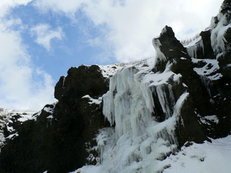 で、お目当ての滝は流れが変わっていて、期待するような凍り方はしていなくて、これまたちょっと残念。