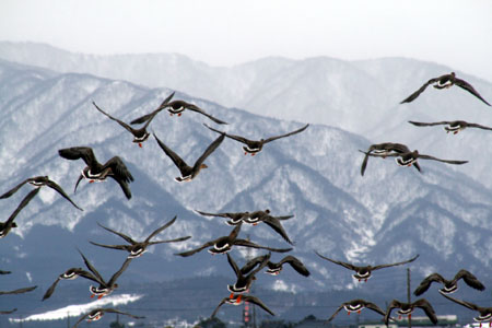 一斉に飛んだオオヒシクイ。