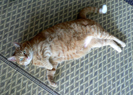 今日なんか、夕立があったせいで、夕方からは気温がグッと下がったので、エアコンも切って、窓全開で過ごしてます。うーむ、猫のほうが文明的な涼を得ているぞ。