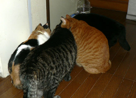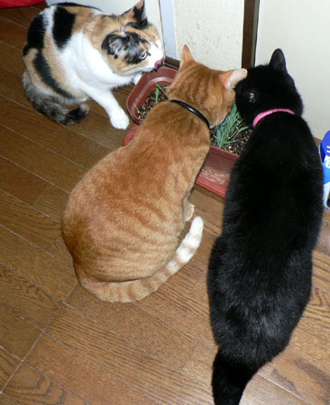 でも、右写真の3匹もものすごく仲が悪いので、一緒に草を食べること自体、珍しいんです。