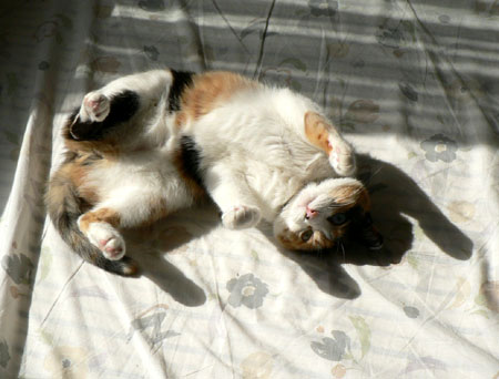 布団を干したあとのベッドが気持ちよくて、豆ちゃん、ばんざいです。